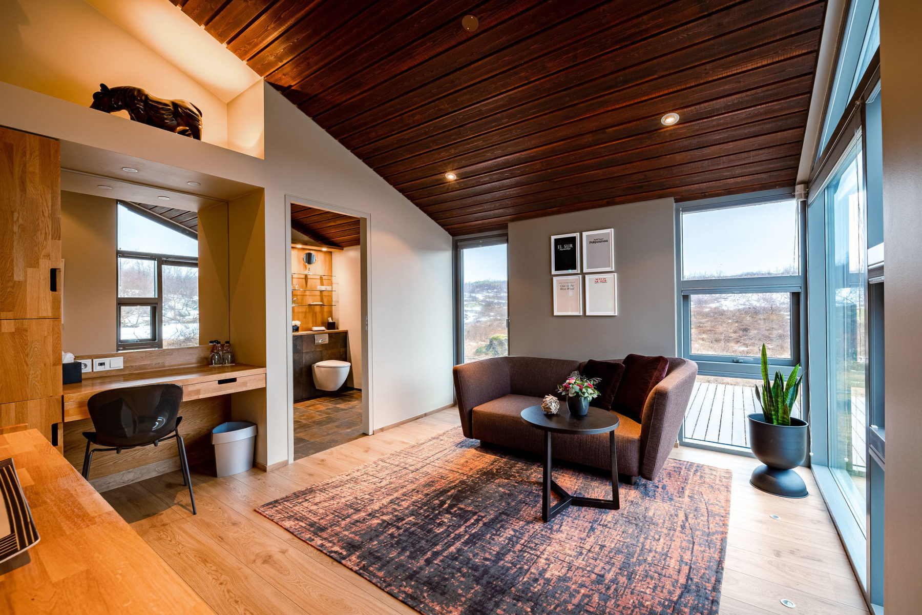 Indulge in pure luxury amidst Iceland’s stunning natural landscape with our spacious suites, accommodating up to 12 guests. Each suite offers the flexibility of twin or double beds and is thoughtfully designed to provide a serene haven after a day of adventuring. Complete with plush bedding, modern amenities, and breathtaking views of the surrounding mountains and glaciers, you’ll relax in style and comfort. Immerse yourself in the tranquil beauty of Iceland’s breathtaking wilderness as you unwind in our exceptional lodgings.