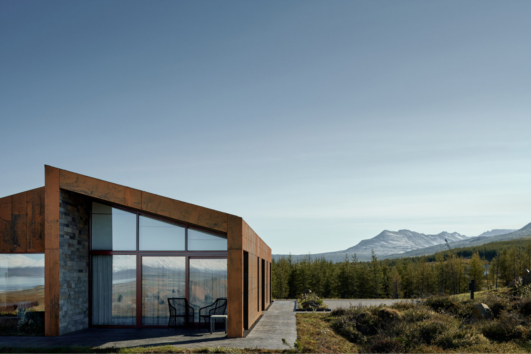 Eldar North includes four suites with floor to ceiling panoramic windows and elegant en-suite bathrooms. Additionally, Eldar North also features a luxurious sauna, spacious and comfortable living spaces and terraces with breathtaking views of the majestic mountains and the beautiful Eyjafjörður fjord.